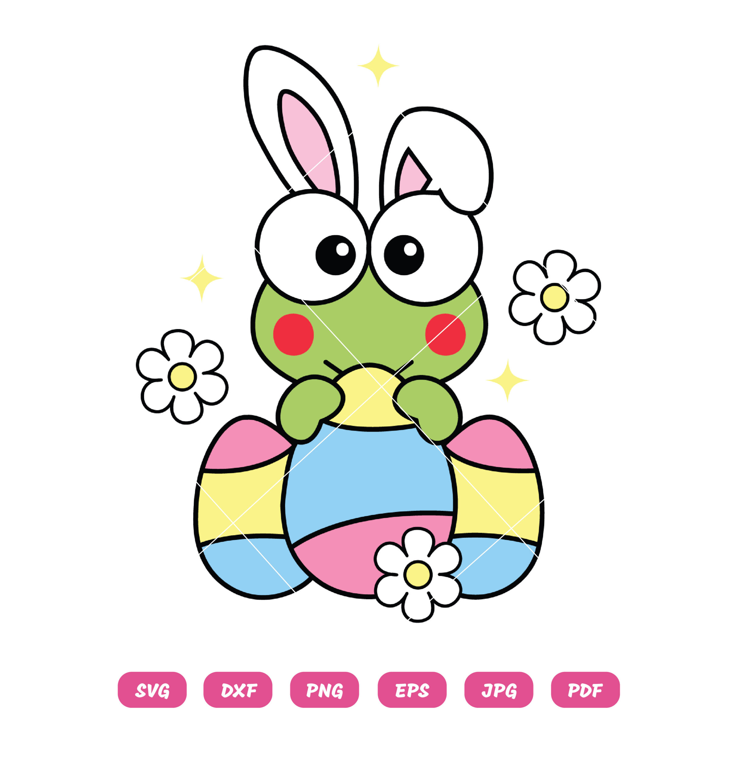 Keroppi Bunny SVG – Cute and festive Easter vector design featuring Keroppi dressed as a bunny. Perfect for Cricut and Silhouette projects such as T-shirts, mugs, stickers, Easter baskets, greeting cards, and spring décor. High-quality, scalable, and easy to customize. 🐰🌸✨