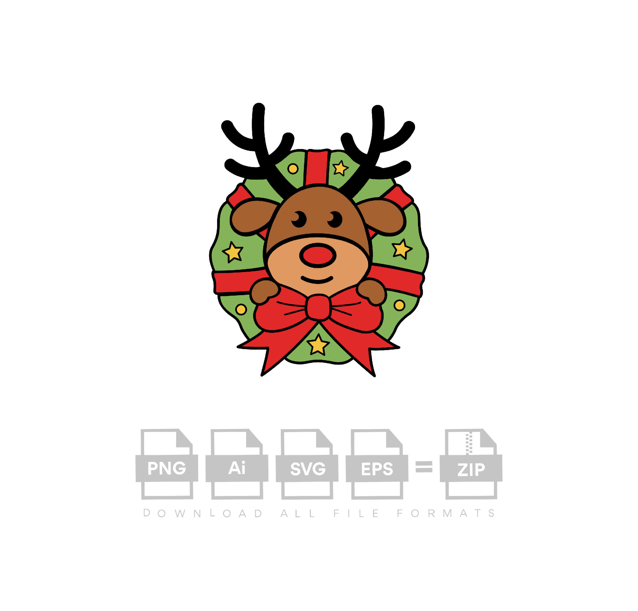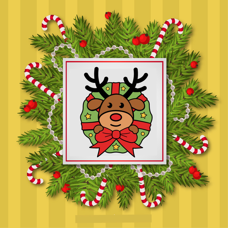 Reindeer In Christmas Wreath Cut Vector