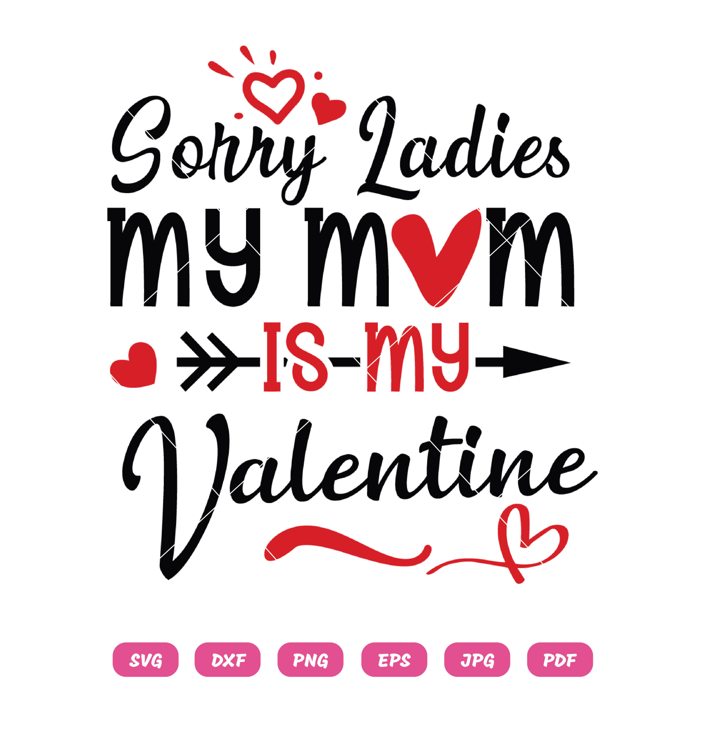 “Sorry Ladies My Mom Is My Valentine’s” is a sweet and humorous vector design featuring playful typography with a loving, family-focused vibe. Perfect for t-shirts, mugs, cards, and gifts, this high-quality artwork comes in SVG, PNG, DXF, and EPS formats for easy printing and crafting. 💖👩👦✨
